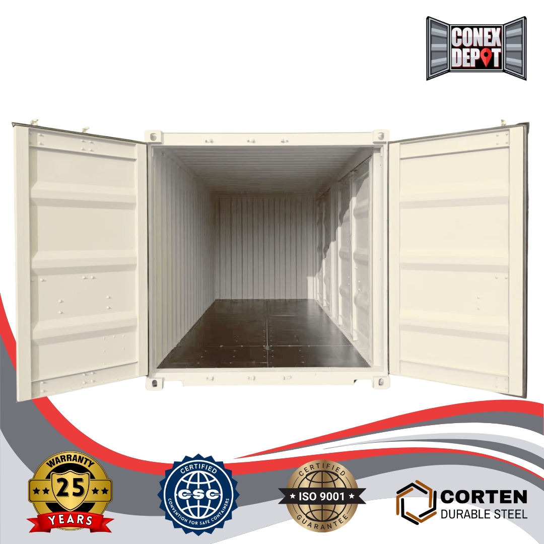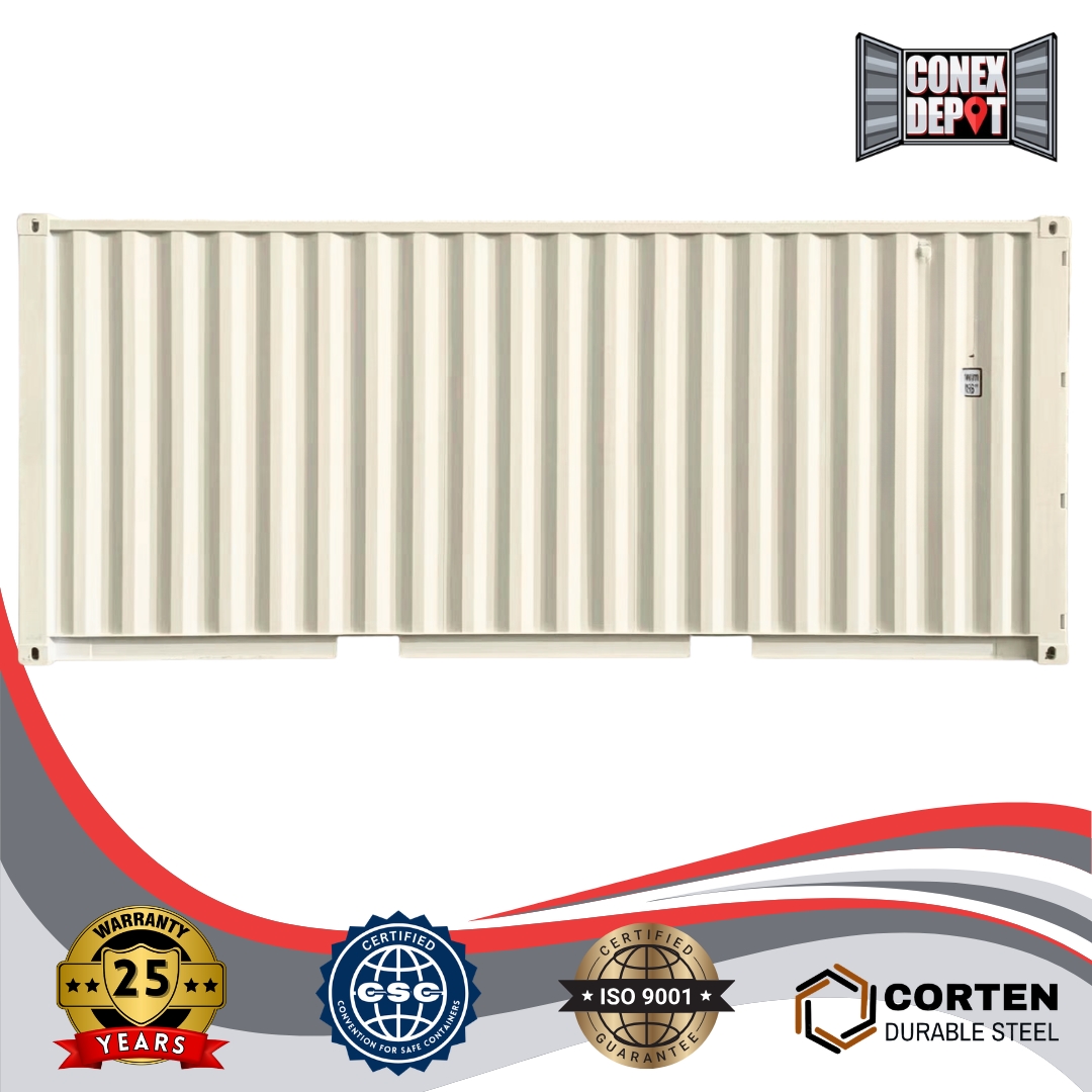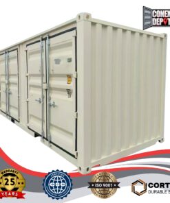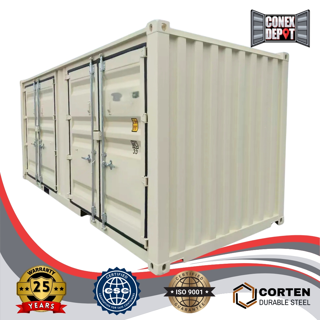 20FT Side Opening Shipping Containers come in two varieties. The unit displayed here was two sets of double doors on one side of the container and another set of double doors on one end. The other version, which has a higher list price, is the full open side shipping container.
