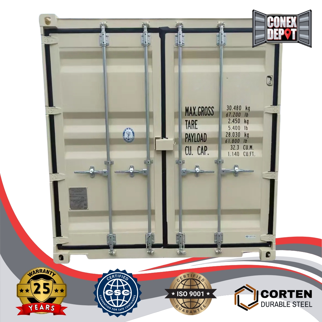 Made from durable corrosion resistant Corten steel, this 20FT conex container is perfect for your home or business storage needs. Shipping containers are very secure, water tight and portable, should you need to relocate. Our containers are manufactured to the highest standards with welded tie down points included on both upper and lower rails, ten air vents to ensure good air flow, a lock box for additional security and a heavy duty marine grade plywood floor that safeguards your valuables, keeping them clean and dry.