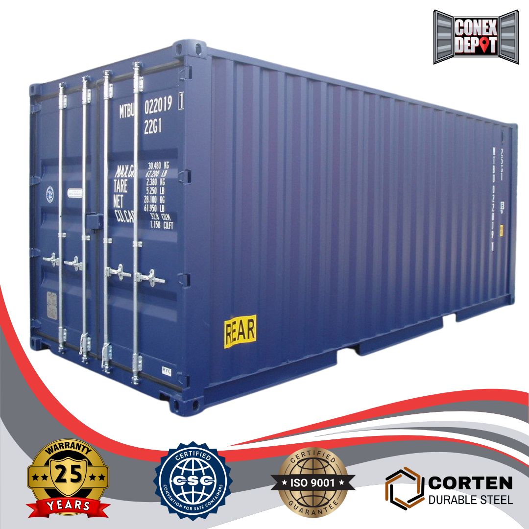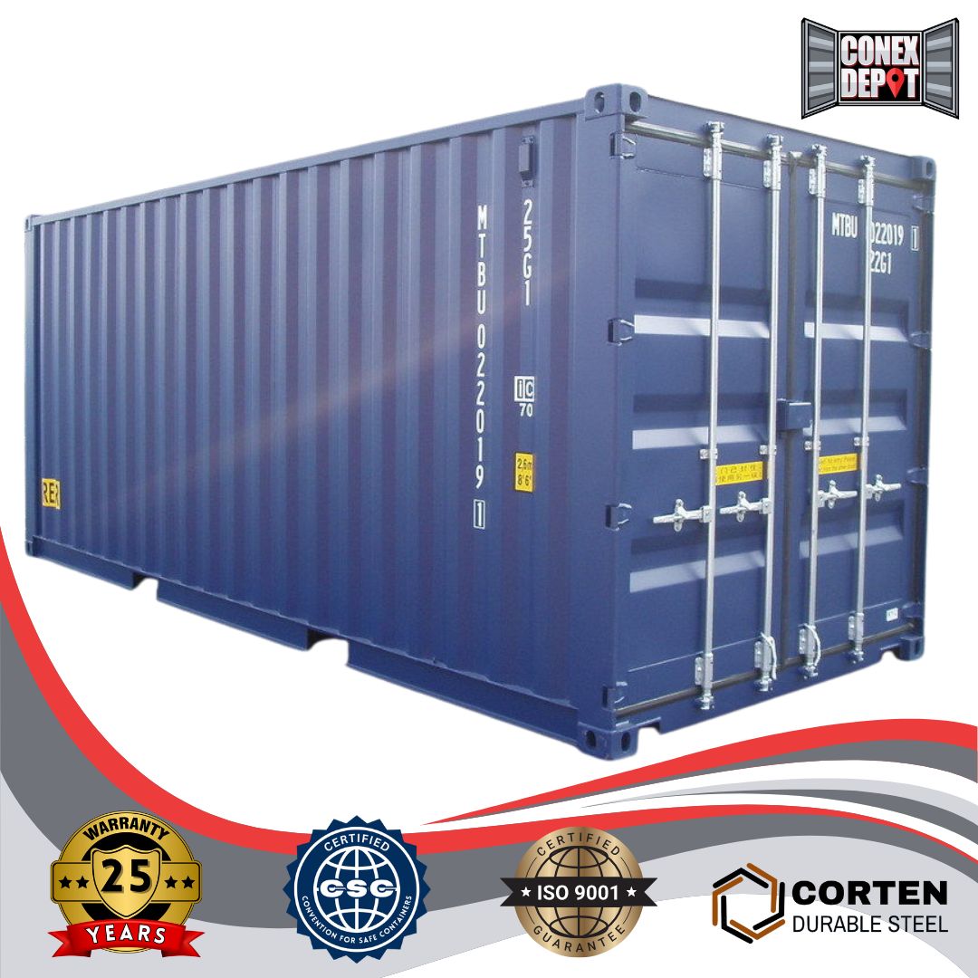 Made from durable corrosion resistant Corten steel, this 20FT conex container is perfect for your home or business storage needs. Shipping containers are very secure, water tight and portable, should you need to relocate. Our containers are manufactured to the highest standards with welded tie down points included on both upper and lower rails, ten air vents to ensure good air flow, a lock box for additional security and a heavy duty marine grade plywood floor that safeguards your valuables, keeping them clean and dry.
