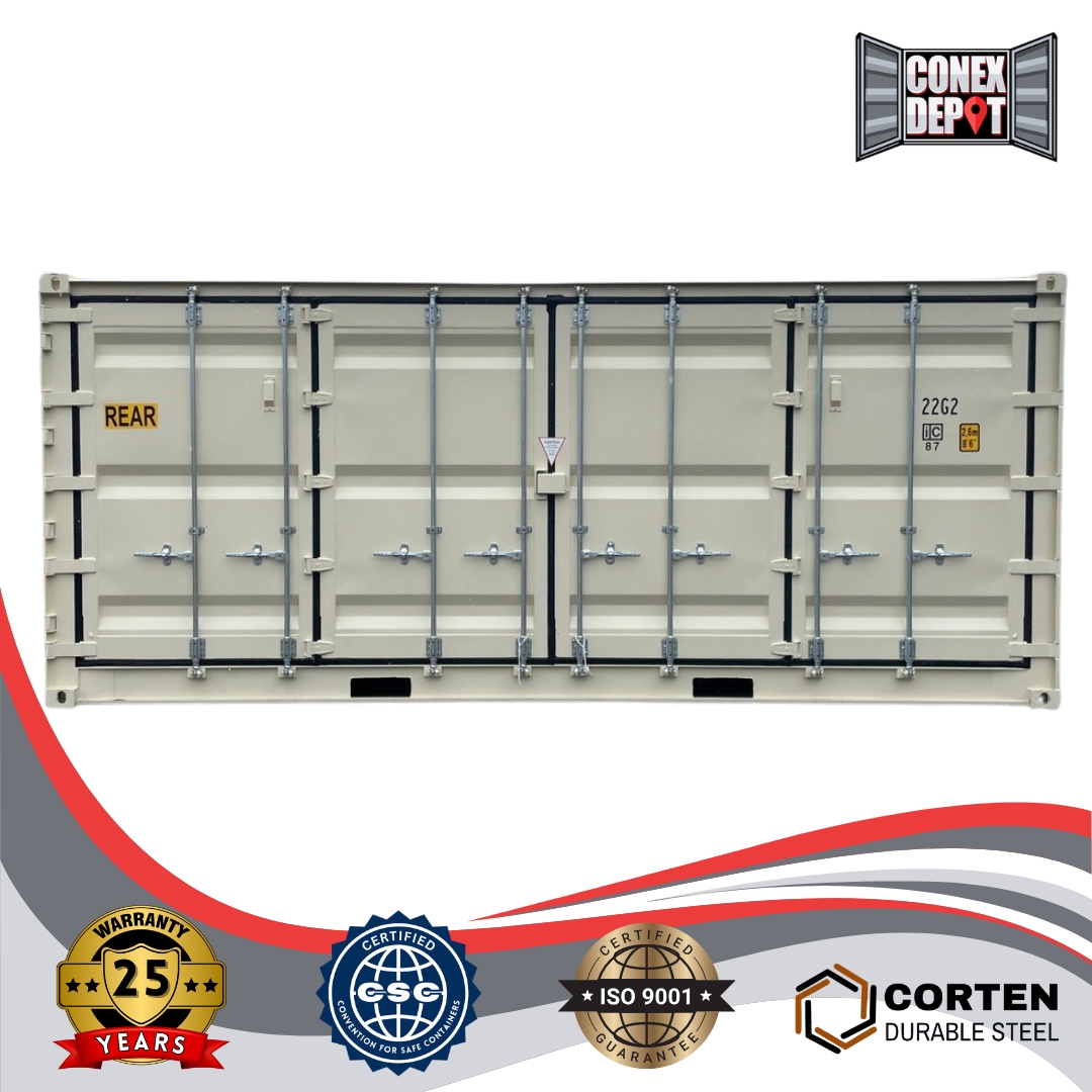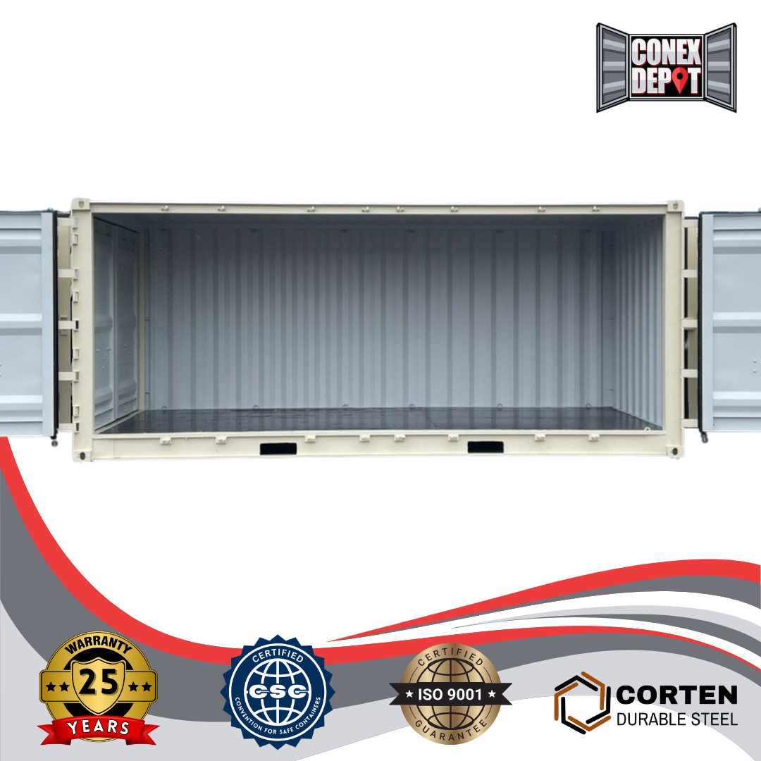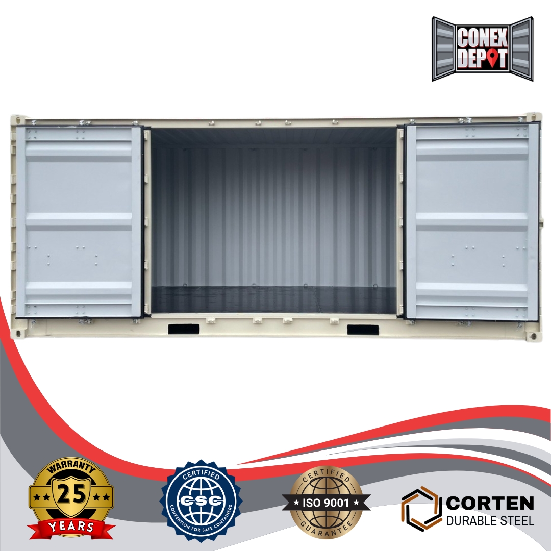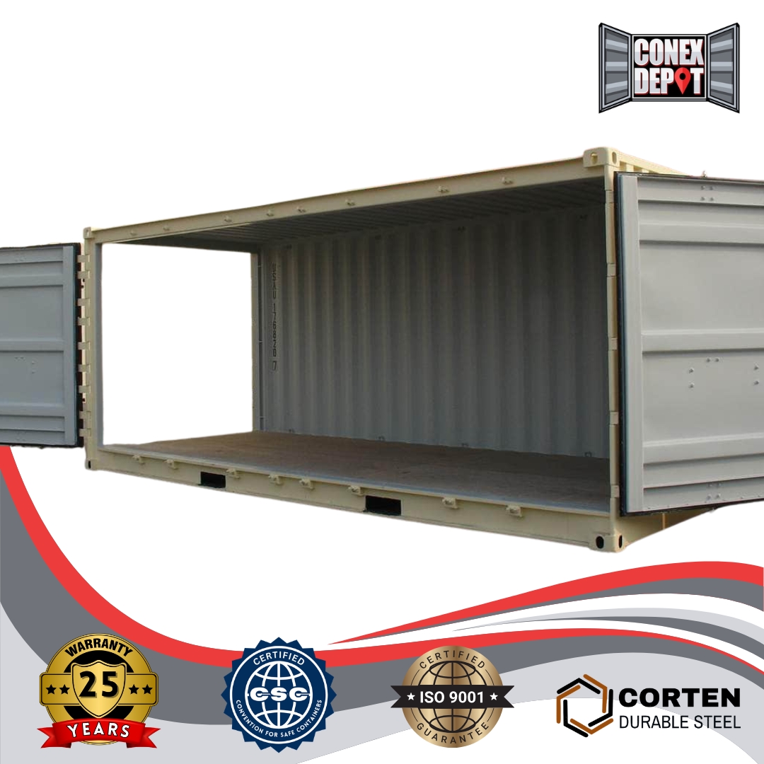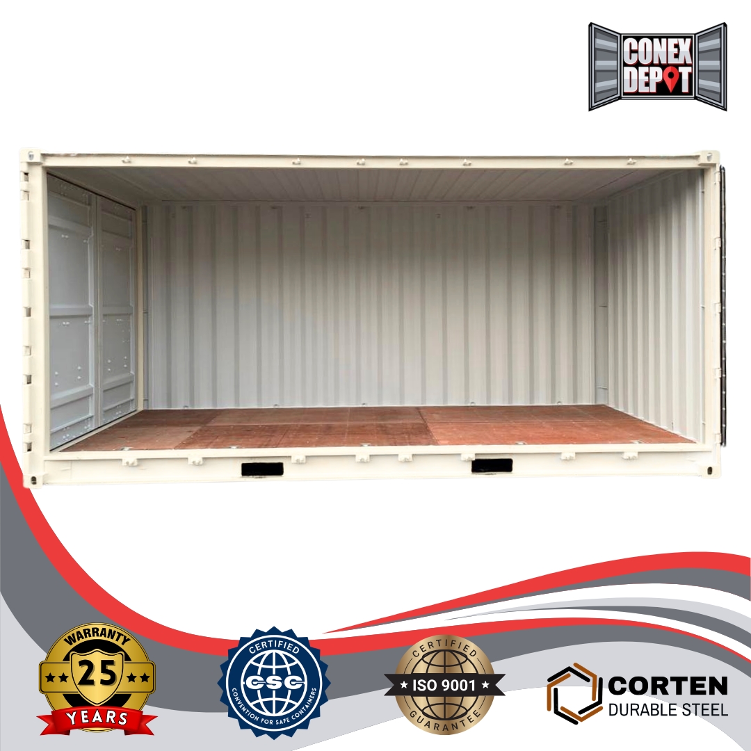 20FT Side Opening Shipping Containers are made in both standard height and high cube configurations. As stock varies, please contact our sales team to check the availability of your preference before ordering.