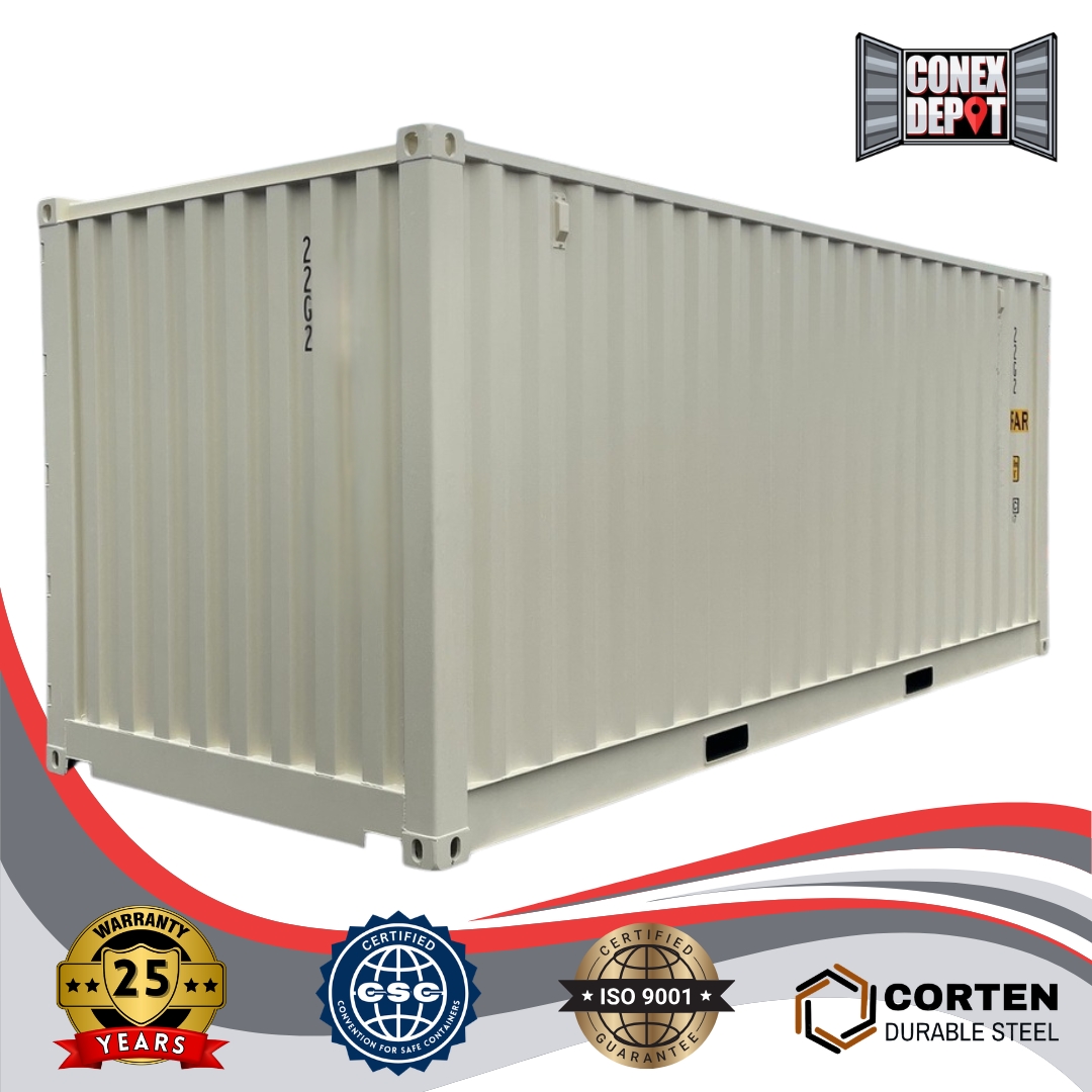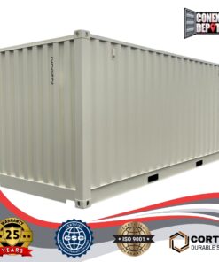 Made from durable corrosion resistant Corten steel, this 20FT conex container is perfect for your home or business storage needs. Shipping containers are very secure, water tight and portable, should you need to relocate. Our containers are manufactured to the highest standards with welded tie down points included on both upper and lower rails, ten air vents to ensure good air flow, a lock box for additional security and a heavy duty marine grade plywood floor that safeguards your valuables, keeping them clean and dry.