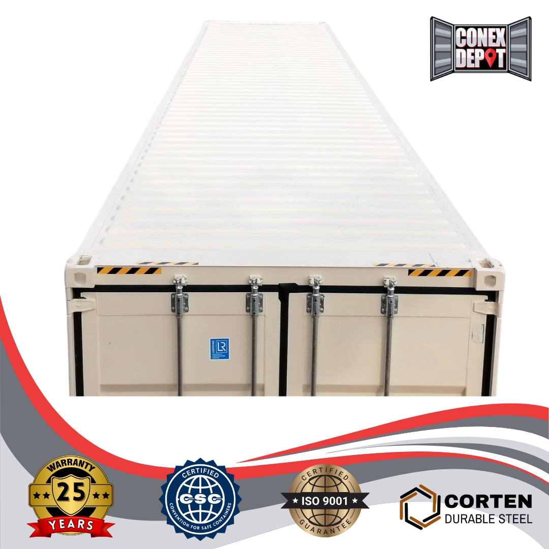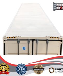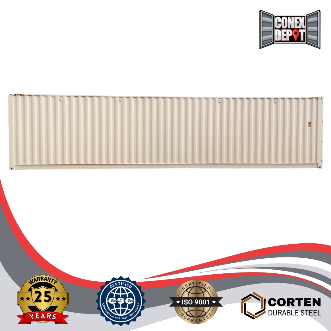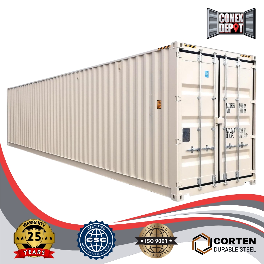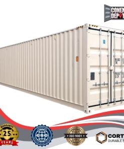 Made from durable corrosion resistant Corten steel, this 40FT conex container is perfect for your home or business storage needs. Shipping containers are very secure, water tight and portable, should you need to relocate. Our containers are manufactured to the highest standards with welded tie down points included on both upper and lower rails, ten air vents to ensure good air flow, a lock box for additional security and a heavy duty marine grade plywood floor that safeguards your valuables, keeping them clean and dry.